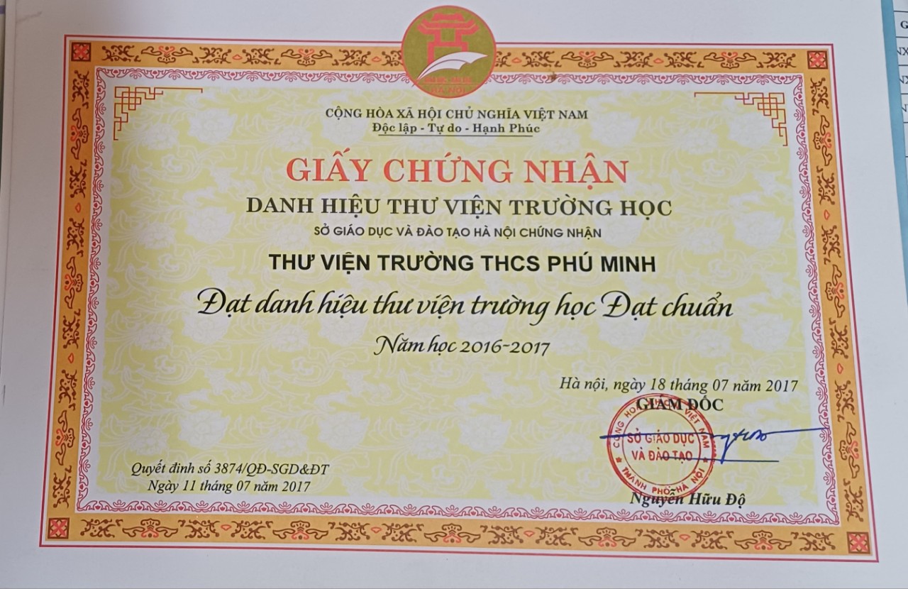 Giấy chứng nhận thư viện đạt chuẩn năm học 2016 - 2017